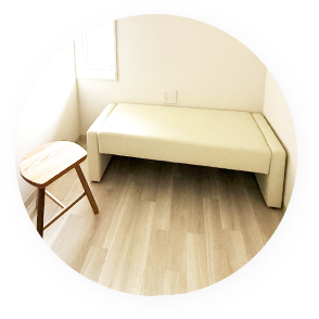 当院に待合室はございません。受付後は家族ごとに個室に入り、お待ちいただきます。医師がそれぞれのお部屋に伺い診察するため、来院時の感染を最小限にし、プライバシーのある空間でリラックスして診療を受けることができます。