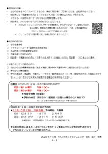 - 前の記事12月予約枠追加~【11~12月】のインフルエンザワクチン予約について