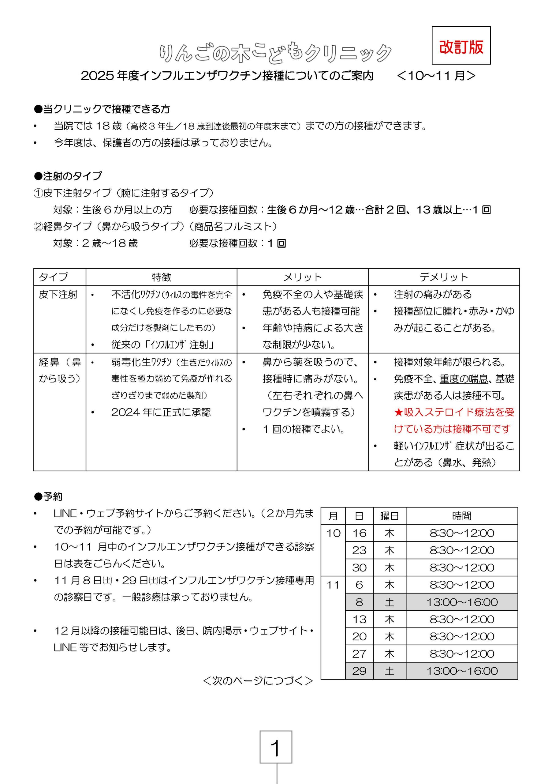 インフルエンザワクチン接種の予約を受付中です。詳細は、こちらのご案内をごらんください。